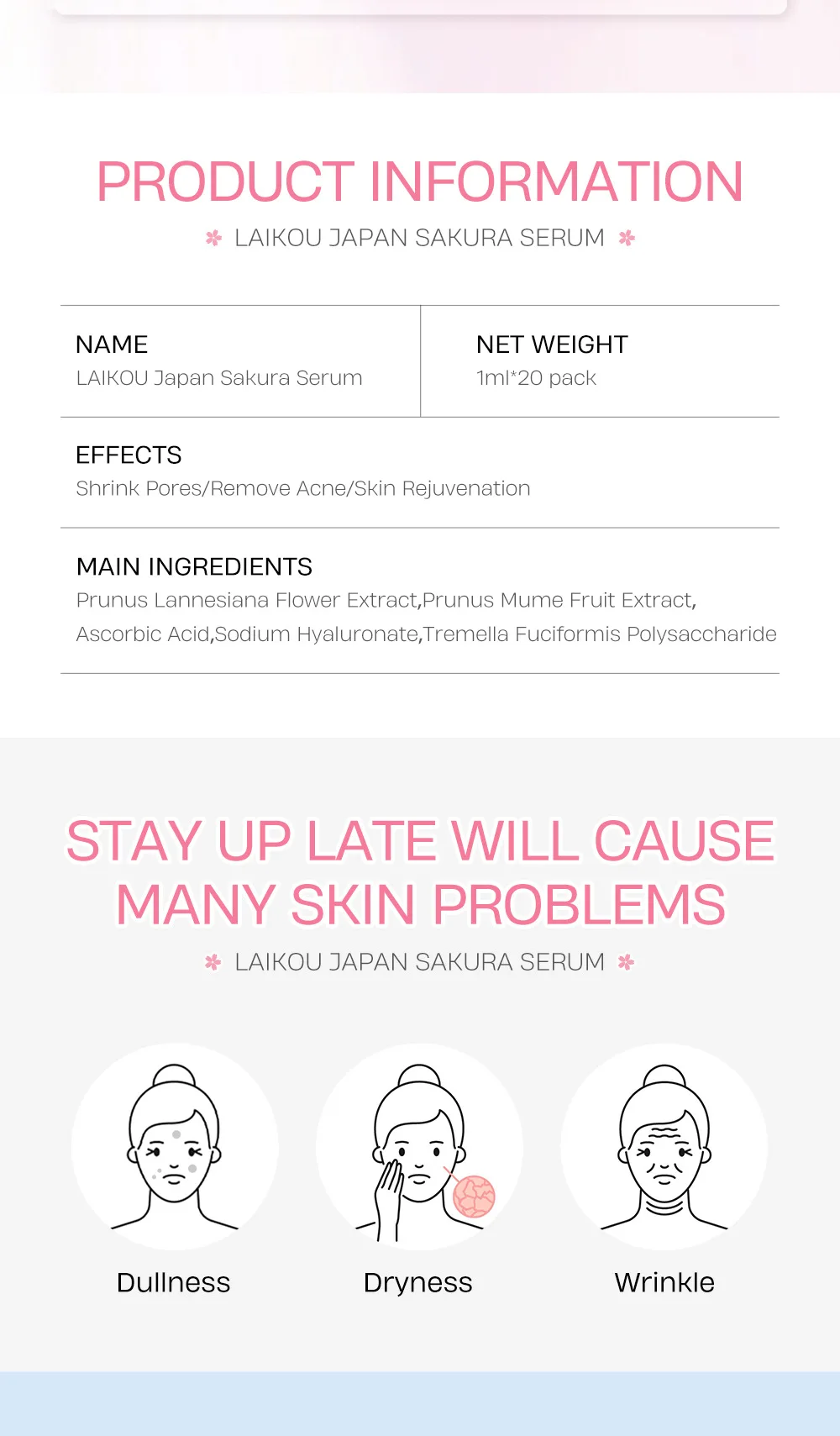 20Pcs Japan Sakura Serum Anti-Aging Whitening Moisturizer Nourish Repairing Brightening Rejuvenation Skin Face Serum Care
